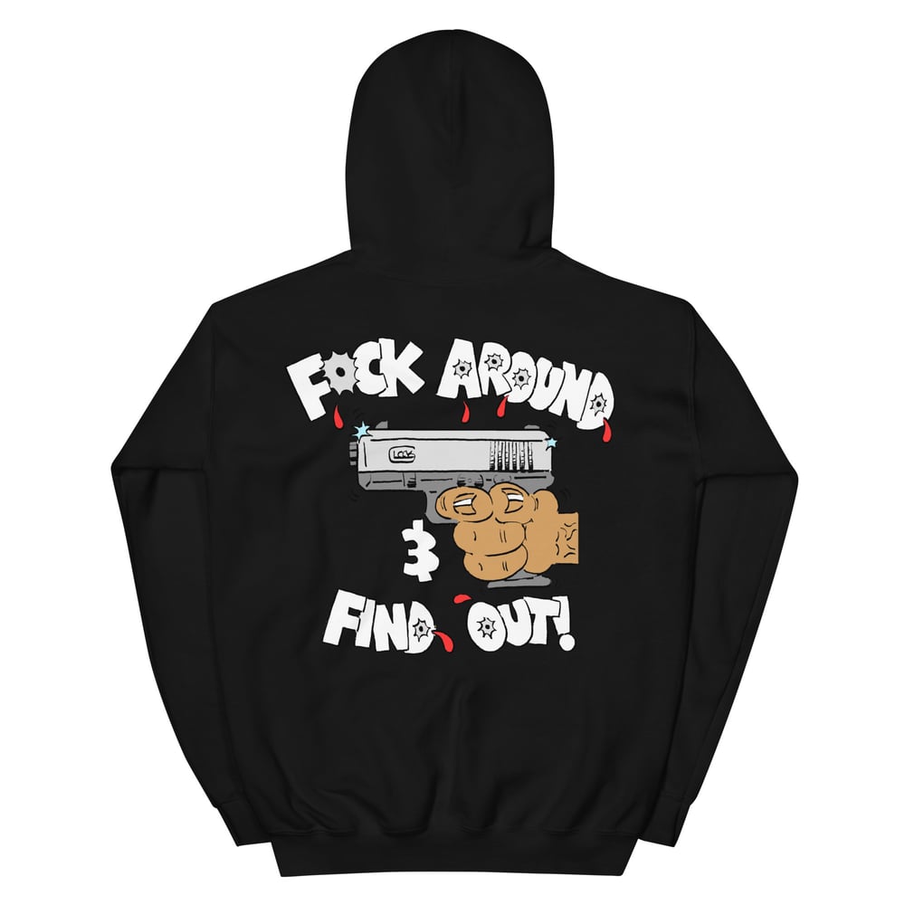 DTG PRINTING ON A BULLET PROOF GILDAN UTRA 100% COTTON BLACK HOODIE